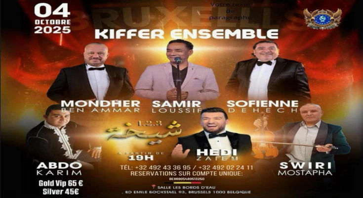في حدث استثنائي بالعاصمة البلجيكية بروكسال يوم 4 اكتوبر المقبل، تعلن رئيسة جمعية My deam event السيدة ايمان السعيدي عن تنظيم سهرة فنية تونسية ستجمع بين الفن والموسيقى والكوميديا.