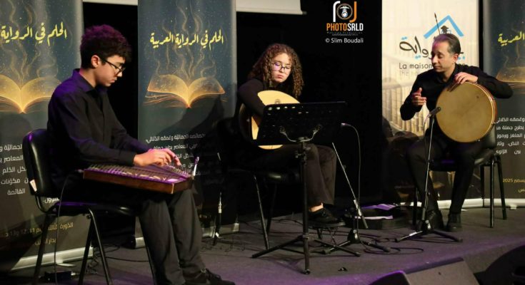 وتضمن البرنامج عرضًا موسيقيًا بعنوان “حلم”، أثّثته مجموعة “وشج” المتكونة من غالية بن حليمة على العود وأوس بن حليمة على القانون، بإشراف محمد حاتم هميلة على آلات الإيقاع. وقدّم الثلاثي أداءً يجمع بين الأصالة والابتكار، مضيفًا لمسة فنية راقية إلى أجواء الملتقى.