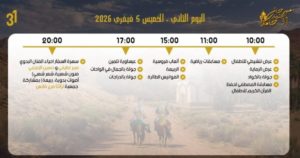 يستهل المهرجان فقرات عروضه الثقافية والرياضية والسياحية على مدى ايام انعقاده بمسابقات في الرسم التشكيلي والطبخ والمسرح والانشاد الصوفي وتسلق النخيل وسباق الجمال، الى جانب برامج تنشيطية خاصة بالاطفال وتركيز معرض للصناعات التقليدية وبرنامج ثري عن العادات والتقاليد التي تميز منطقة شوق الاحدوفقرات اخرى مفصلة حسب البرنامح التالي: