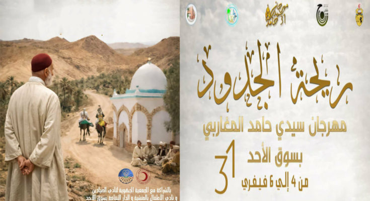 ستنطلق عن قريب أهازيج الاختفالات بتظاهرة تحت شعار “ريحة الجدود” لمهرجان سيدي حامد المغاربي بسوق الاحد ولاية قبلي في دورته 31 وذلك من 4 الى 6 فيفري 2026، تحت اشراف المندوبية الجهوية للشؤون الثقافية قبلي، بشراكة مع الجمعية الجهوية لنادي الصيادين ونادي الاطفال بالمنشية ودار الثقافة بسوق الاحد.
