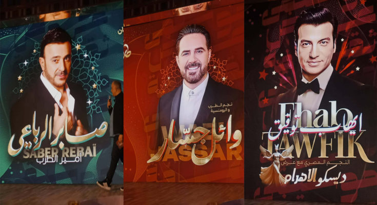 حيث سيكون عرض الافتتاح مع الفنان وائل جسار يليه عرض “يلا نغنّي” ثم سهرة تجمع لطفي بوشناق ورانا زورق إلى جانب عرض “الزيارة” للفنان سامي اللجمي كما سيكون الجمهور على موعد مع سهرة يحييها زياد غرسة وآية دغنوج وعرض “الخمسة” بمشاركة الفنانة نبيهة كراولي إضافة إلى عرض “عشّاق الدنيا” لعبد الحميد بوشناق.وتتواصل السهرات مع سهرة النجوم بقيادة أمل القرمازي وبمشاركة كل من محمد الجبالي أحمد الرباعي أنيس لطيف محرزية الطويل وأفراح إلى جانب سهرة خاصة للفنانة أمينة فاخت ثم سهرة للفنان إيهاب توفيق مرفوقة بعرض “ديسكو الأهرام”.